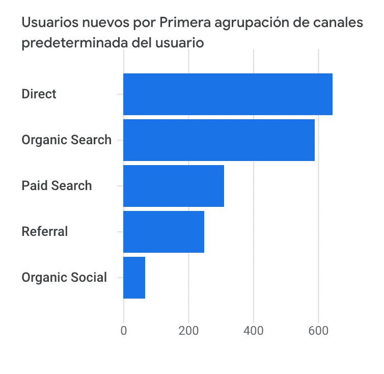- Además, nos permite conocer cuál ha sido el canal por el que han acudido los internautas. Estos canales de tráfico se pueden desglosar en 4: búsqueda orgánica, tráfico directo, social y referral.