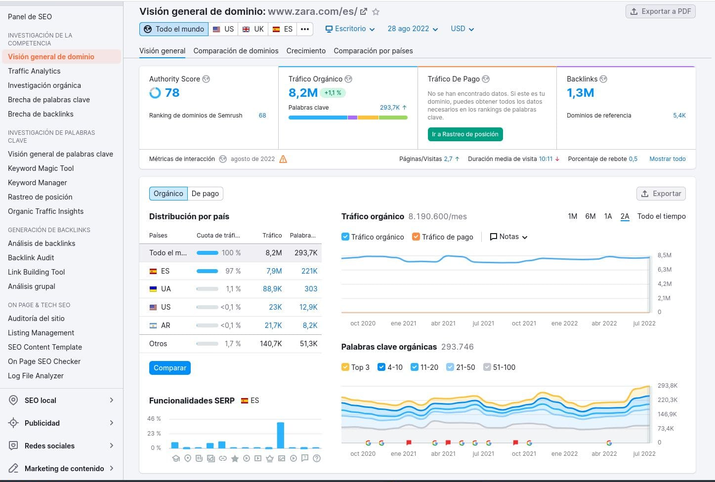 es una herramienta SEO muy completa que no solo te ayuda a conocer el tráfico de tu web, sino que también ofrece funciones para estudiar el tráfico orgánico de tus competidores. Con su función competitive research toolkit, puedes obtener un análisis detallado del tráfico de cualquier sitio web.