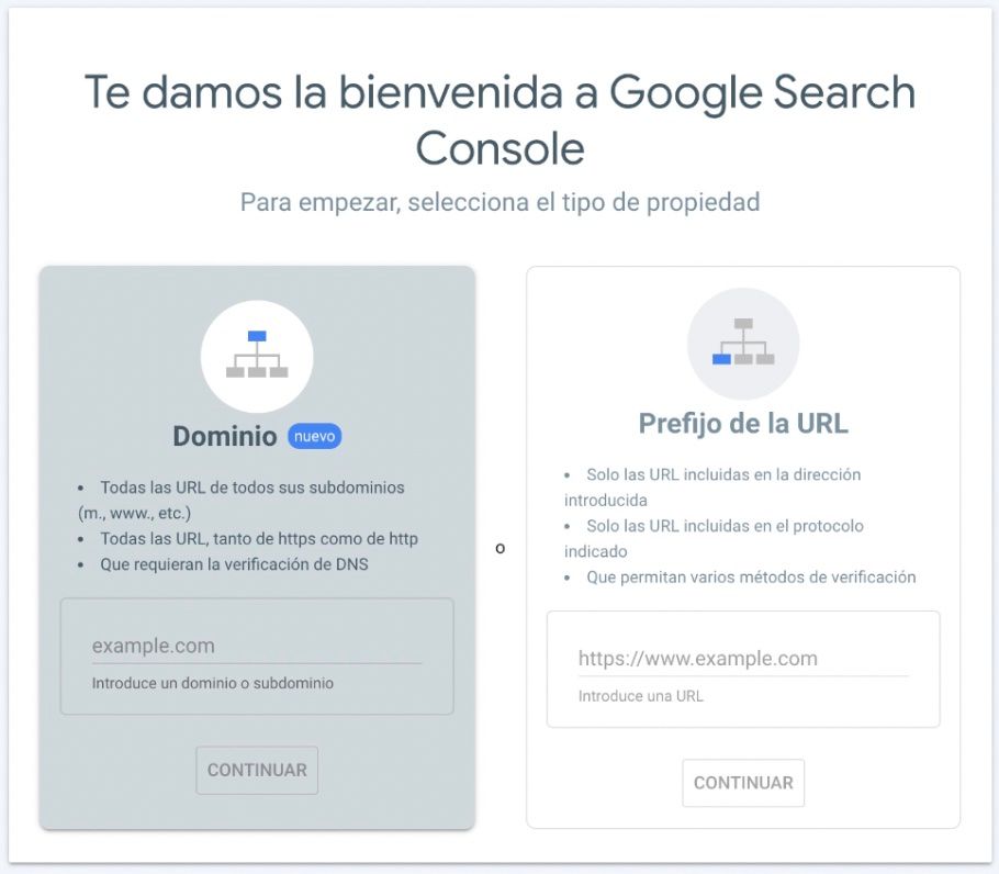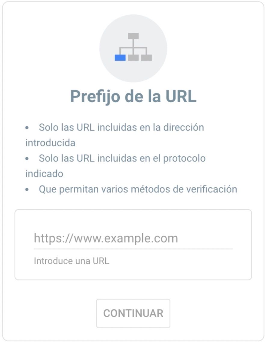 Como ves para crear una cuenta Google Search Console necesitas sí o sí introducir la URL de una web, de ahí que no tuviera sentido hacer esto si no la tienes. Es importante que tengas acceso a ella porque hay que insertar un código html (no te preocupes es muy sencillo añadirlo).