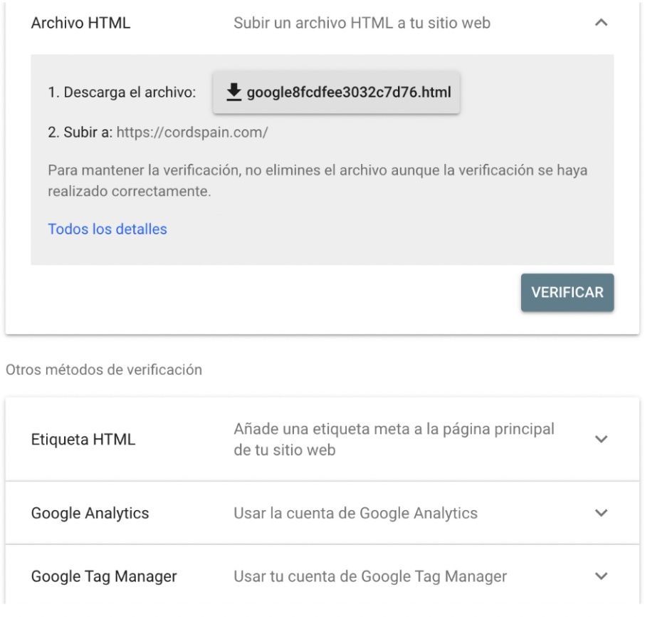Tipos de verificación Google Search Console
